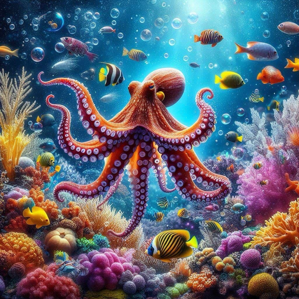 Vi BlÀckfiskar har inget skelett, men vi har Ätta armar, tre hjÀrtan och blÄtt blod. Vi Àr unika varelser som lever ensamma pÄ havets botten pÄ mycket stora djup. Vi BlÀckfiskar Àr mycket nyfikna och mÀstare pÄ att utforska vÄr omgivning. Vi har en helt otrolig förmÄga att ta oss igenom mycket smala och trÄnga utrymmen. Vi Àr vÀldigt duktig pÄ att lösa olika problem och rÀkna ut hur saker och ting fungerar. Vi tycker om att lÀra oss saker, bÄde genom att iaktta och att prova oss fram sjÀlva. MÄnga BlÀckfiskar anvÀnder olika redskap för att skaffa sig föda, till exempel kan vi anvÀnda en sten för att krossa skalet pÄ en mussla för att komma Ät innanmÀtet.